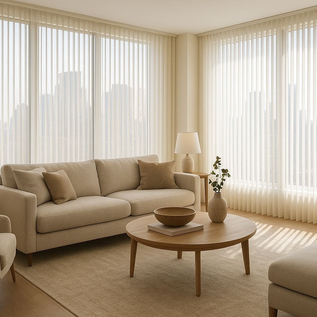 Las persianas Lohas consisten en lamas verticales forradas con tela premium que simula ondas perfectas al abrir y cerrar. Ideales para ventanas grandes ofrecen control de luz natural con protección UV y un toque distinguido que transforma espacios.
